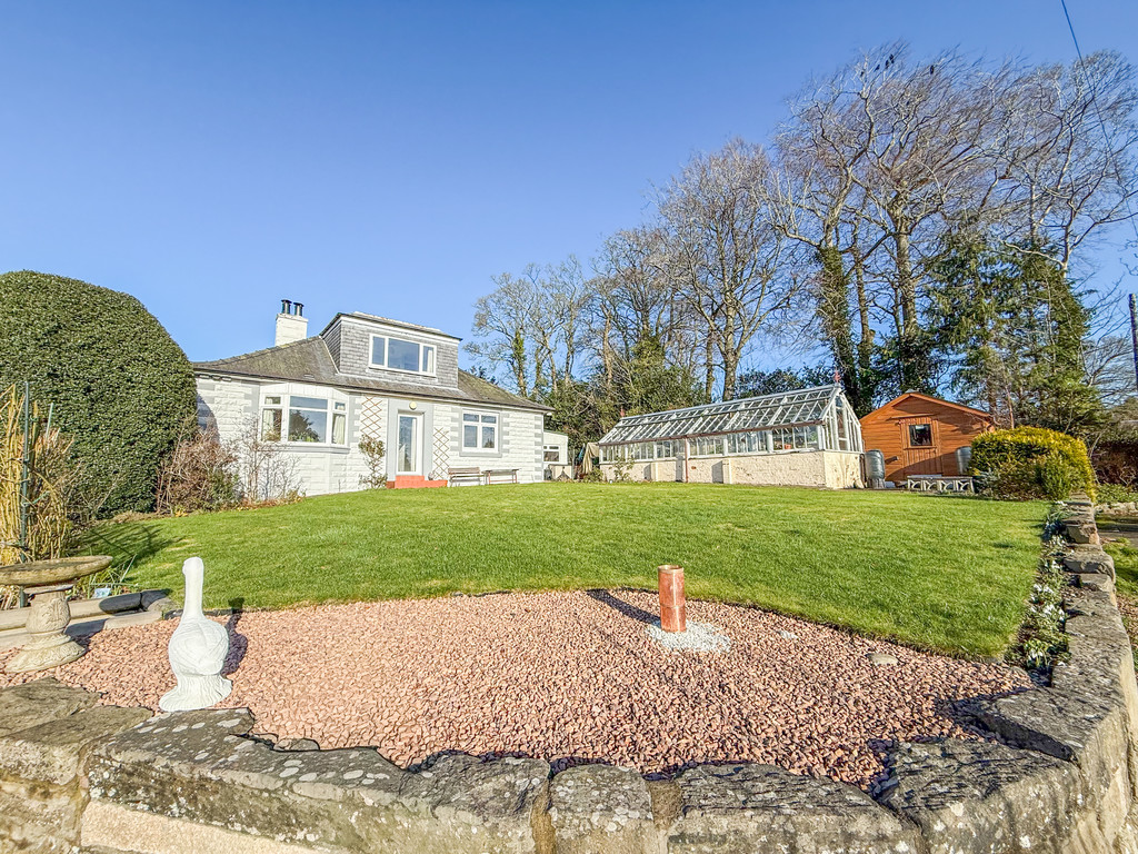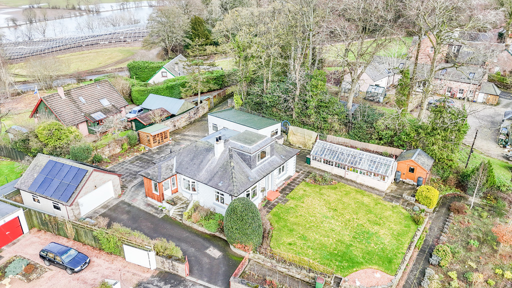 Externally, the property is equally impressive. Driveway access to both sides of the plot allows parking for multiple vehicles. The large established south facing garden enjoys all day sunshine and magnificent views towards the Sidlaw Hills, with a substantial Victorian greenhouse enhancing the outdoor space. Two double garages complete the offering. One benefits from a lined loft space, vehicle inspection pit, solar panels and an electric door, while the second, also with an electric door, is currently arranged as a workshop with a small office area.