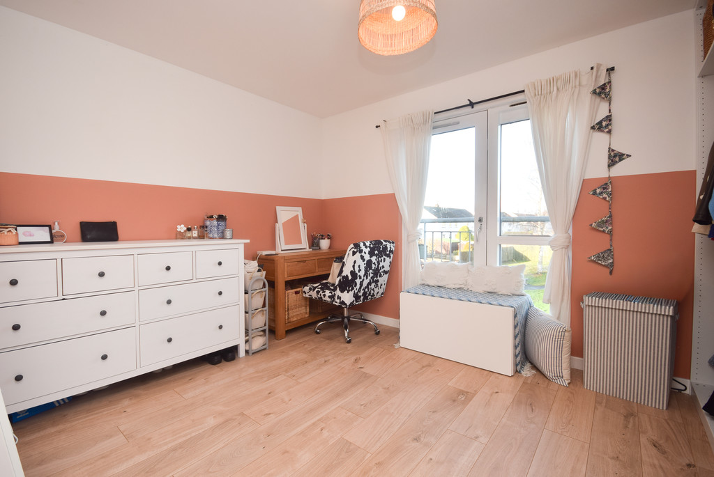 Both bedrooms are generous doubles. The principal bedroom is calm and spacious, while bedroom two mirrors the same light, fresh feel and works perfectly as a guest room, home office or nursery.