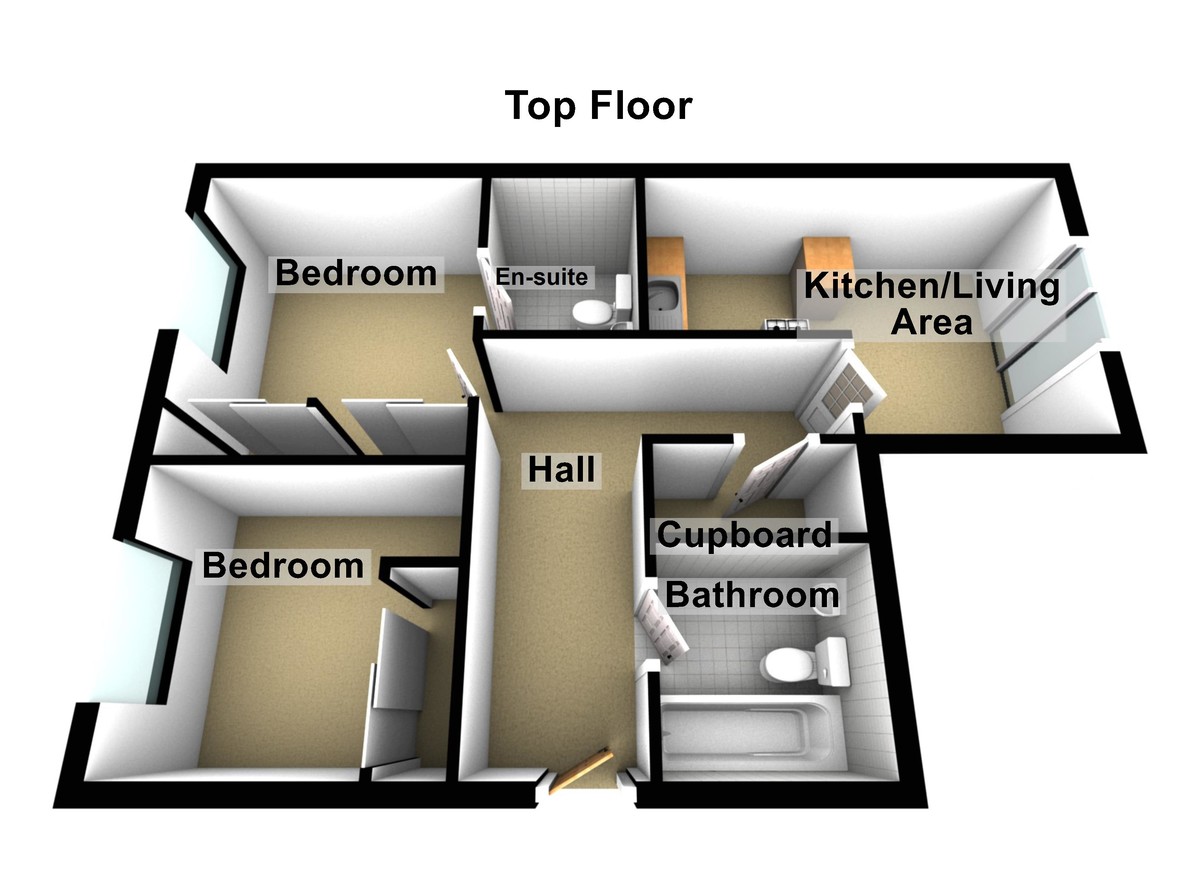 The property would be ideal for a first time buyer with accommodation set on the top floor and accessed via a secure door entry system. The accommodation comprises: Entrance hall with storage, open plan lounge/kitchen area with ample room for a variety of furniture, 2 double bedrooms with built in wardrobes and the principal bedroom benefiting from an en-suite shower room. There is also a bathroom to complete the property.