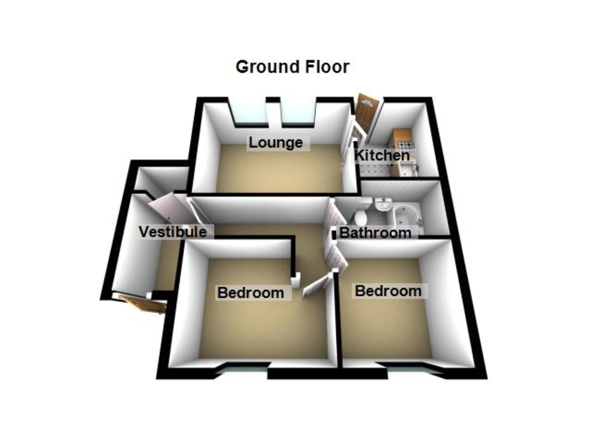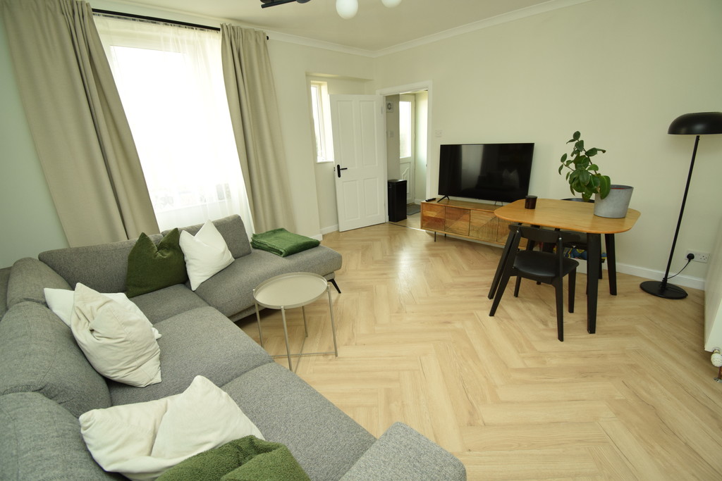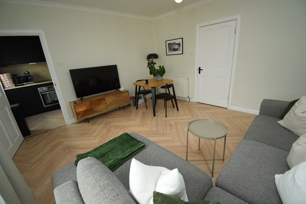 The property has been modernised to an exceptionally high standard and the accommodation comprises Entrance Vestibule with storage cupboard; hall; bright lounge; modern kitchen with integrated appliances and door to the rear garden; contemporary bathroom with white suite and two double bedrooms with ample space for range of free standing furniture.